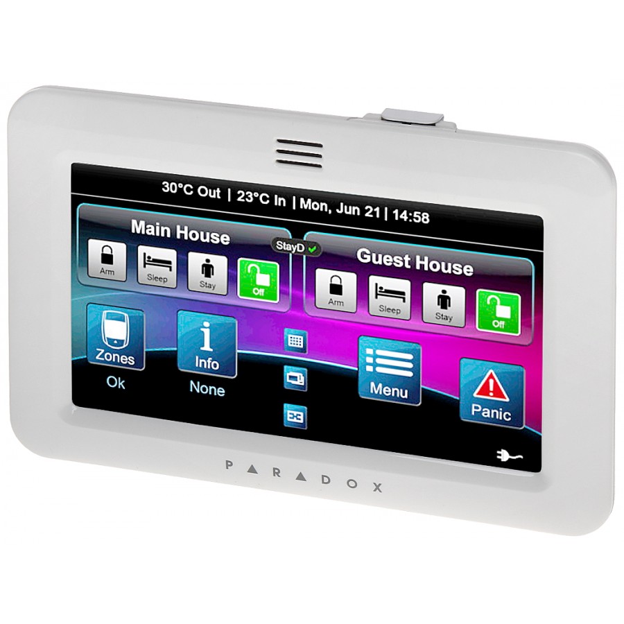 Klawiatura dotykowa TM50-823 charakteryzuje się atrakcyjnym wyglądem oraz ułatwia codzienną obsługę zaawansowanych systemów alarmowych i automatyki domowej wykorzystujących możliwości central PARADOX: Digiplex EVO, Spectra, Magellan. Proste ...