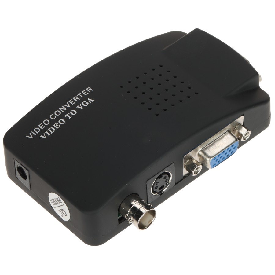 Konwerter VGA-1920F przekształca sygnał Composite Video lub S-Video na VGA.